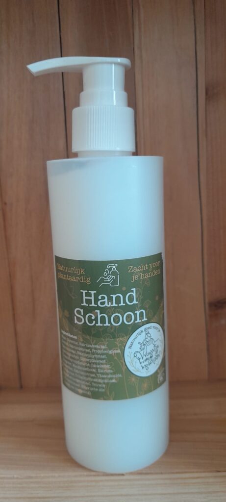 Hand Schoon is een plantaardige zeep o.b.v. Sheaboter, Mangoboter en Cacaoboter. Deze zeep is vocht inbrengend en heeft een hoog vitamine E,D en A gehalte, afkomstig uit deze 3 boters. De zeep bevat geen SLS, SLES en is vrij van parabenen, phenoxyethanol en PEG