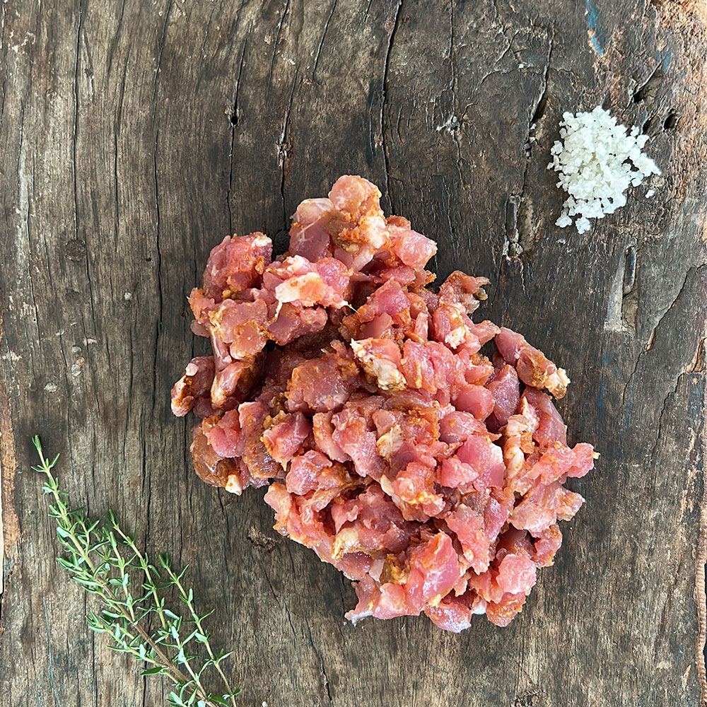 Fijn gesneden varkensvlees, gekruid met shoarmakruiden. Heerlijk in een pita of wrap. Snel klaar en vol smaak.